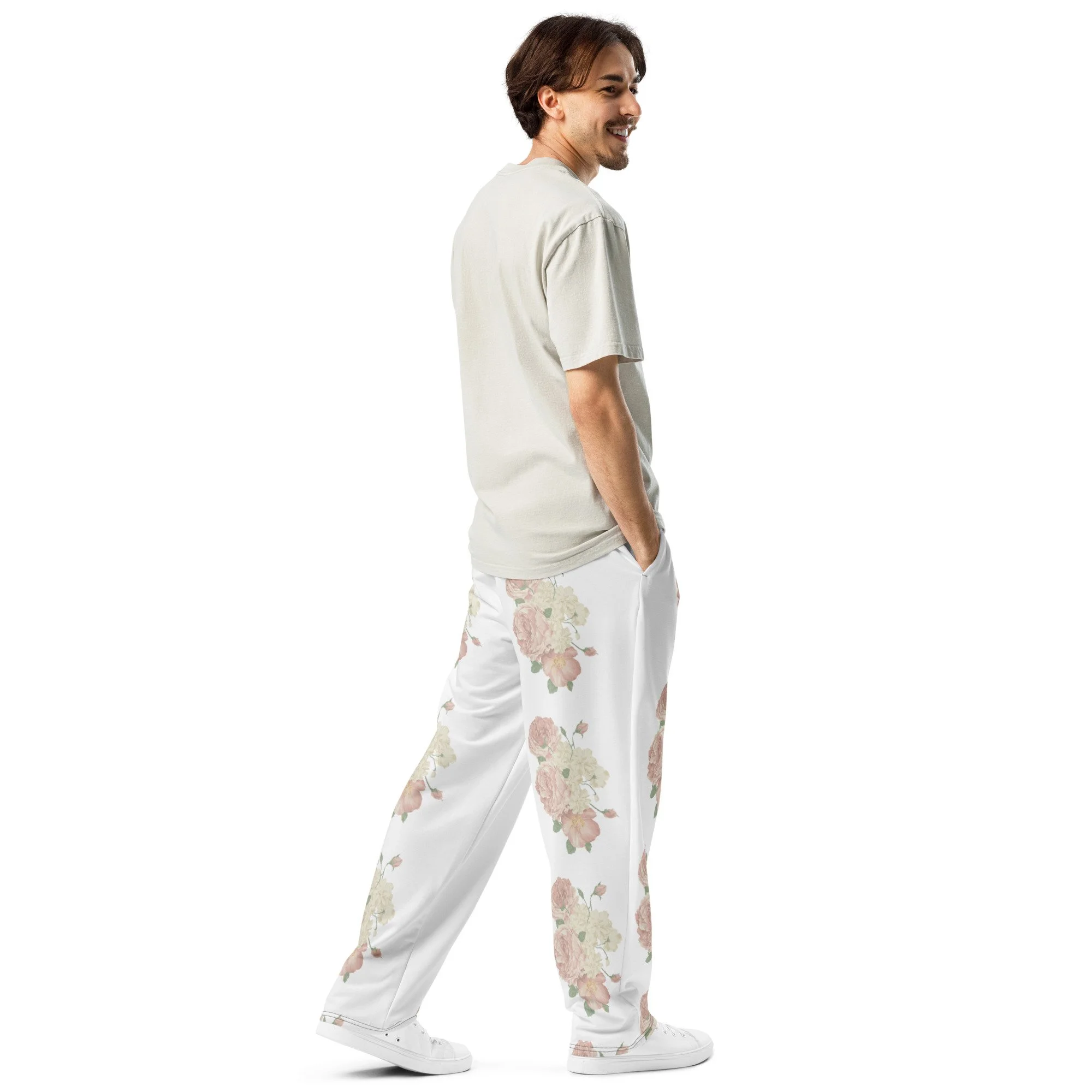 Rediscover ’90s fashion with these all-over print wide-leg joggers. Ideal for athleisure looks and casual outings, they offer a unisex fit and handy side pockets.